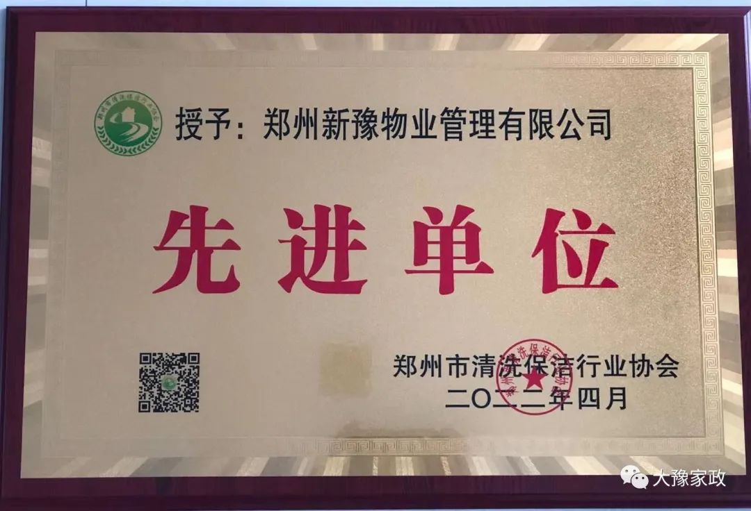2022年7月13日,大豫集團旗下物業(yè)公司-鄭州新豫物業(yè)管理有限公司被鄭州清洗保潔行業(yè)協(xié)會(huì )授予“先進(jìn)單位"、“防洪抗疫先進(jìn)單位”“2021年度優(yōu)秀示范項目”。