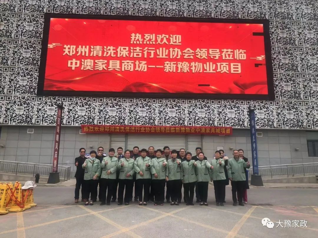 2022年3月16日鄭州清洗保潔行業(yè)協(xié)會(huì )會(huì )長(cháng)劉智等一行參觀(guān)調研新豫物業(yè)中澳家具城項目。