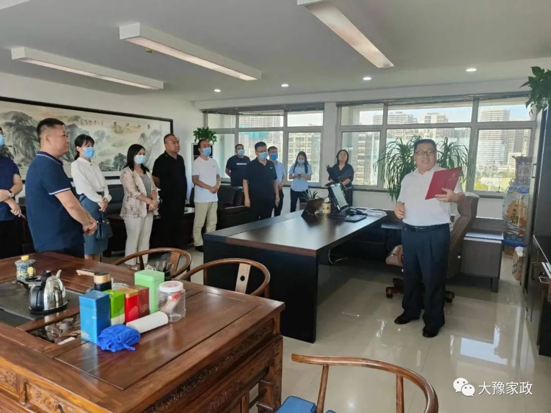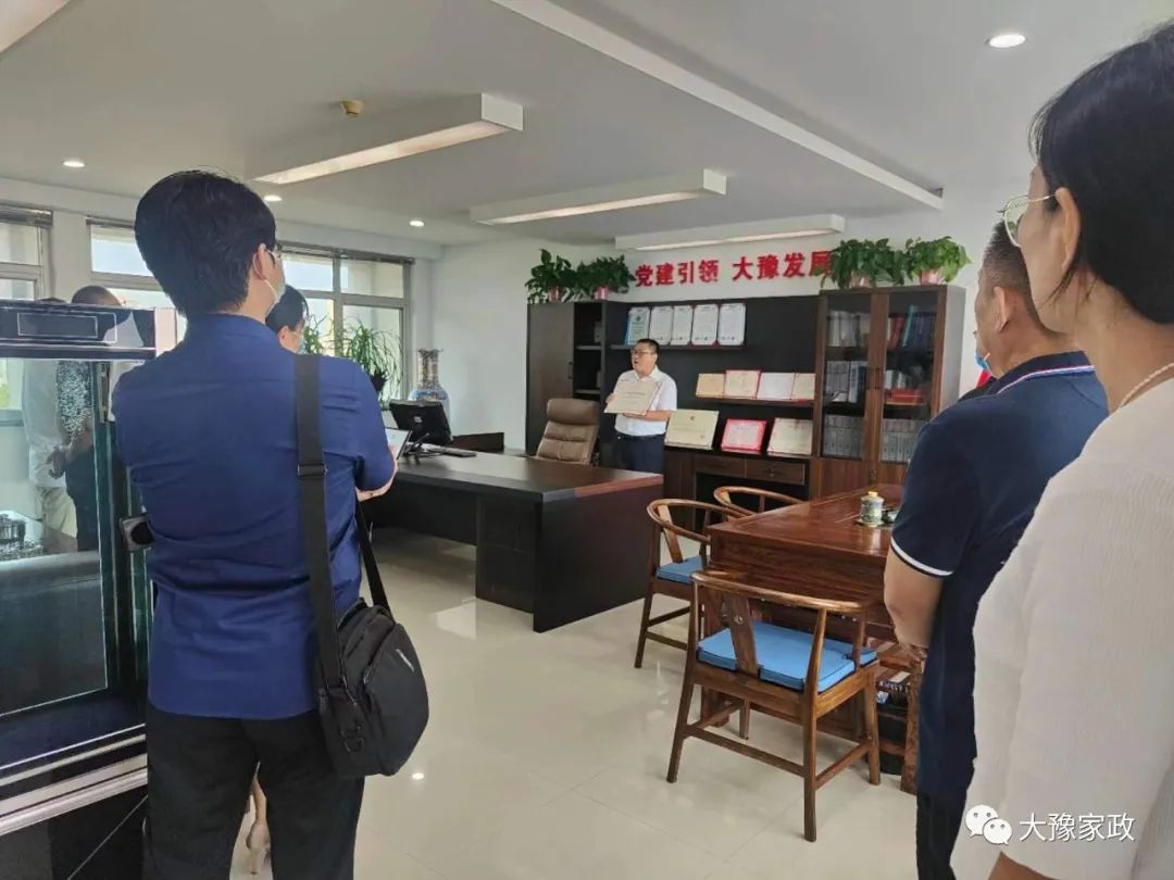 2022年8月23日下午,鄭州市金水區第十屆政協(xié)秘書(shū)長(cháng)庫光耀、民法委主任趙競生、副主任王雁玲、東風(fēng)路街道副書(shū)記方雅蕾和部分政協(xié)委員參觀(guān)調研大豫家政總部。