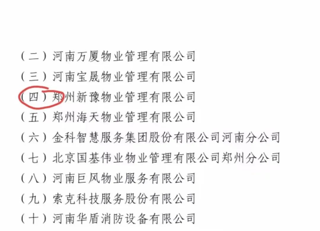 2023年4月14日,鄭州新豫物業(yè)管理有限公司,被鄭州市清洗保潔行業(yè)協(xié)會(huì )評為“2022年度優(yōu)秀企業(yè)”榮譽(yù)稱(chēng)號。