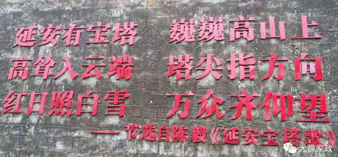 棗園合影留念 寶塔山,位于陜西省延安城區中心,海拔1135.5米,寶塔山建于唐代,高44米,共九層,寶塔山是革命圣地延安的重要標志和象征。中共中央進(jìn)駐延安后,這座古塔成為革命圣地的標志和象征,建國后,國務(wù)院將延安寶塔歸入第一批全國重點(diǎn)文物保護單位延安革命舊址之中。1953年版第二套人民幣二元券正面圖案為"延安寶塔山"。中華人民共和國1955年頒授的獨立自由勛章,核心圖案就是寶塔山。